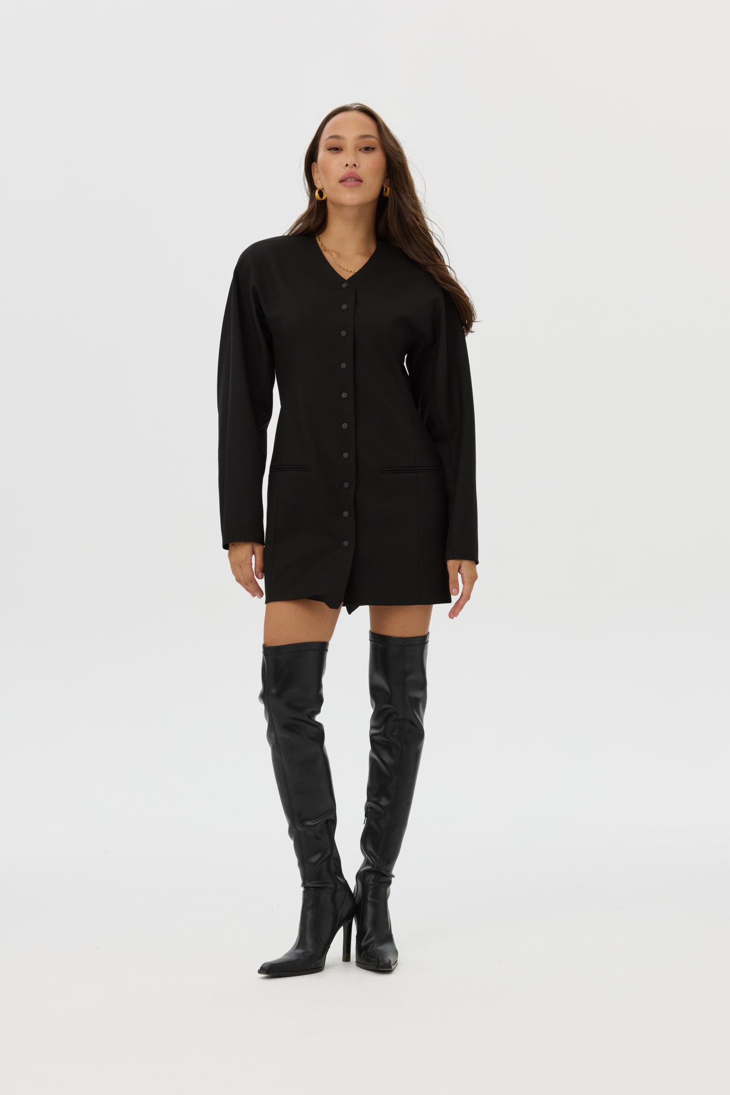 Deliberately exaggerated forms and volumes, bordering on theatrical expression, create a distinctive visual language without crossing into costume. Amplified proportions and sculptural silhouettes become a stage for statement details, where form and line work together to achieve expressive, visually impactful results.